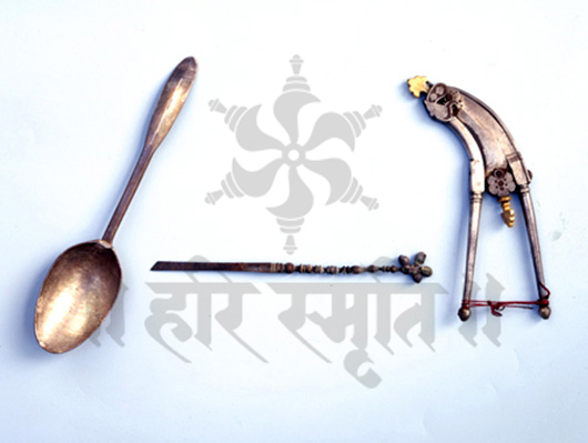 Betel nut-cracker, silver spoon and nail cutter graced by Lord Swaminarayan