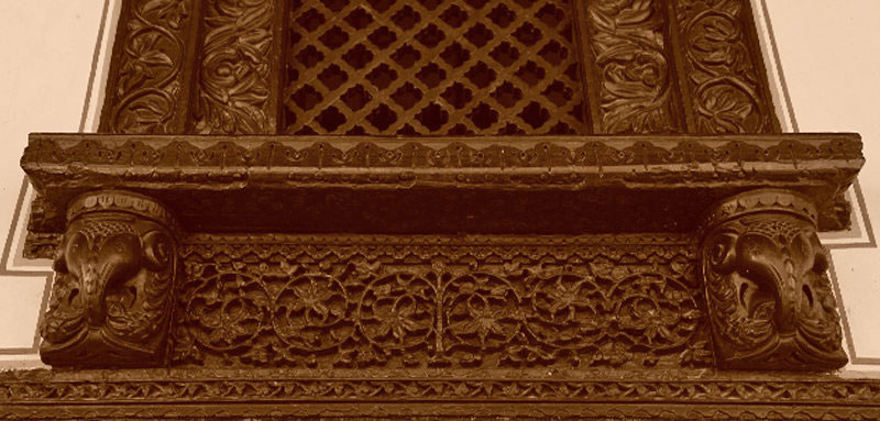Wood carving detail of the bottom of window.