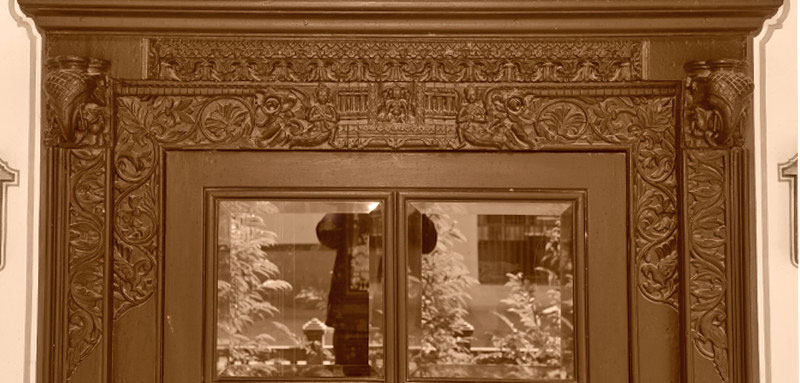 Wood carving detail of main door.
